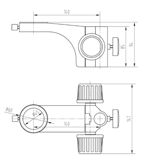 型號名稱: SF11升降組 說 明: ● 調(diào)焦手輪松緊可調(diào)整,確保長期使用可靠 ● 立柱安裝孔直徑Φ25mm,鏡體安裝孔直徑Φ45mm, 兩孔中心距140mm