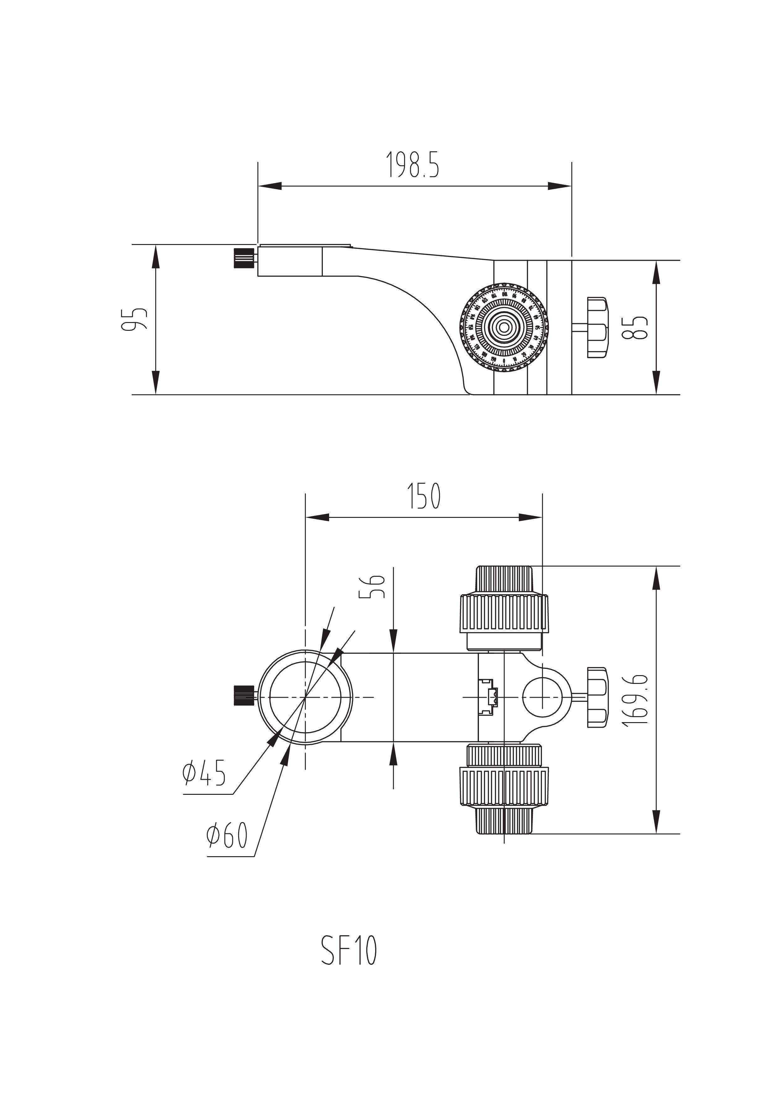 型號名稱:SF10升降組 說 明: ● 粗微調(diào)同軸手輪,可調(diào)整粗動調(diào)節(jié)手輪張力 ● 鏡體安裝孔直徑Φ45mm ● 立柱安裝孔直徑Φ25mm ● 鏡體安裝孔與立柱安裝孔中心距150mm